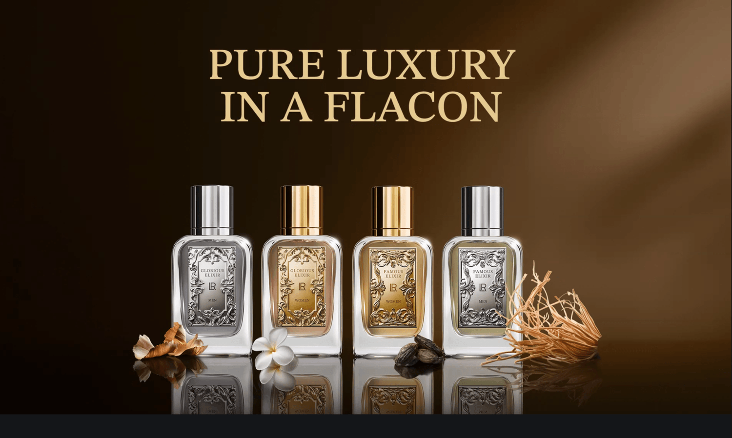 LR ICONIC ELIXIRS representerer ren luksus – de omslutter sansene dine som flytende gull og gir deg en strålende aura av glamour, prestisje, kraft og sensualitet. Gjør et statement med en premium parfyme som på imponerende vis feirer din unikhet!